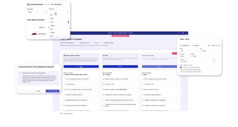 - Inserisci luoghi di ritiro/consegna + dettagli veicoli
